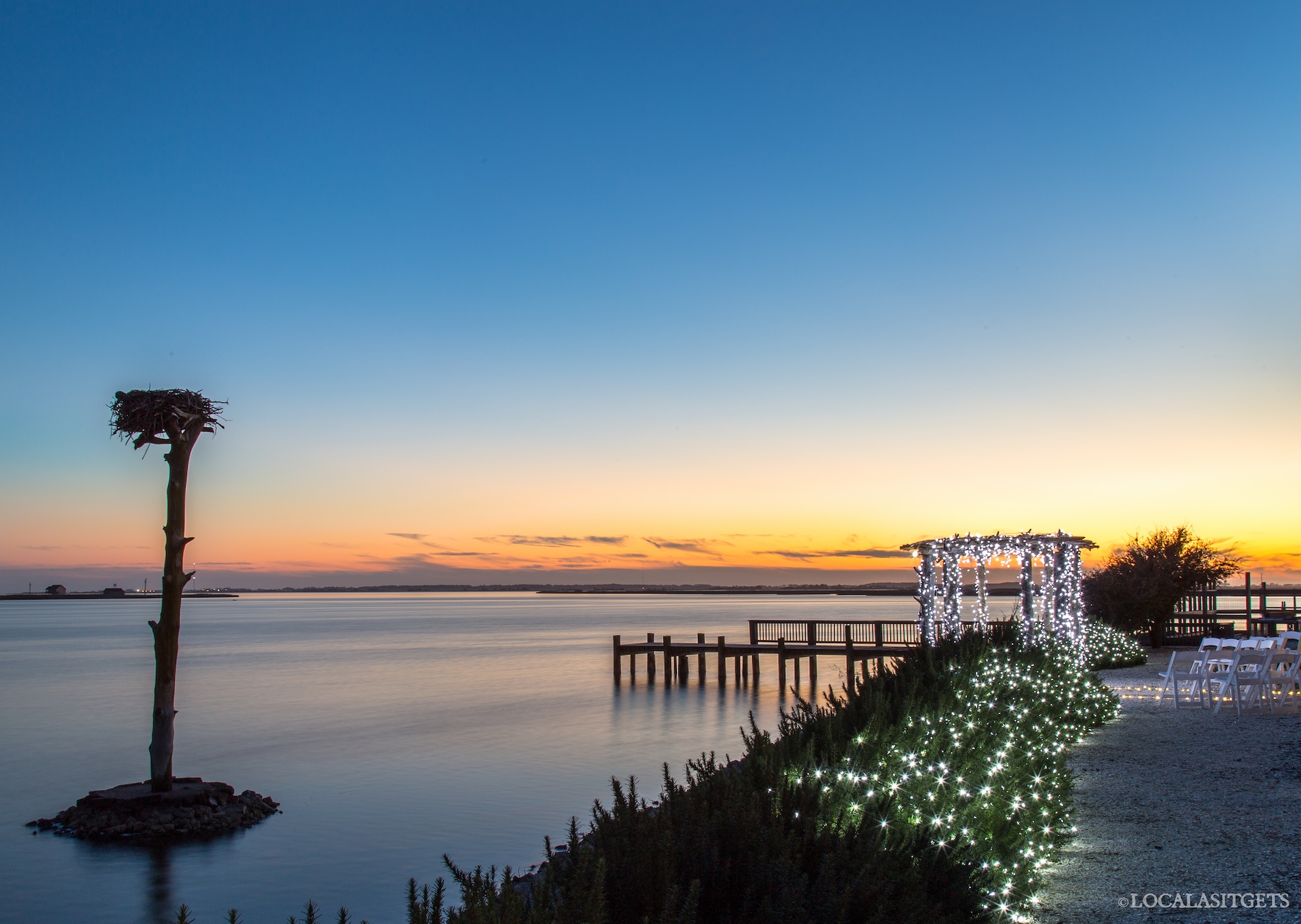 Lone Cedar Catering specializes in off-premises events, but we’re also happy to cater your special gathering right here at the restaurant. At Lone Cedar, you’ll find three private event spaces with sweeping water views—two spacious indoor dining rooms and a charming outdoor waterfront patio. Lone Cedar offers a private ceremony space with a driftwood arbor and stunning views of the Osprey nest and Roanoke Sound. Whether you’re throwing a retirement party or a business-related event, a bridal or baby shower, a wedding reception or party, a holiday gathering, a birthday or a Let’s Just Celebrate festivity, we can host it and provide delicious food and drinks. We have set menus, or you can work with our chefs to create the menu of your choice – we don’t limit your creativity! These events can be scheduled during the day at any time or during our regular dinner hours, business permitting. Tour groups are welcomed, either as regular diners or with a specialty menu and seating. The Cedar throws our own special In-house events too! Our New Year’s Eve party is wildly popular! Many locals wouldn’t consider being anywhere else to bring in the New Year, and visitors are just as welcome as old-time friends! And our Buffets are legendary. Mother’s Day, Easter, Thanksgiving and our Holiday buffets help you celebrate without having to do all the cooking. Just relax…it’s a holiday!